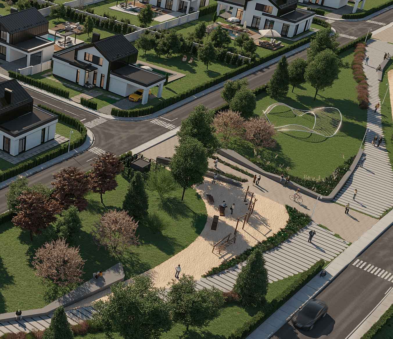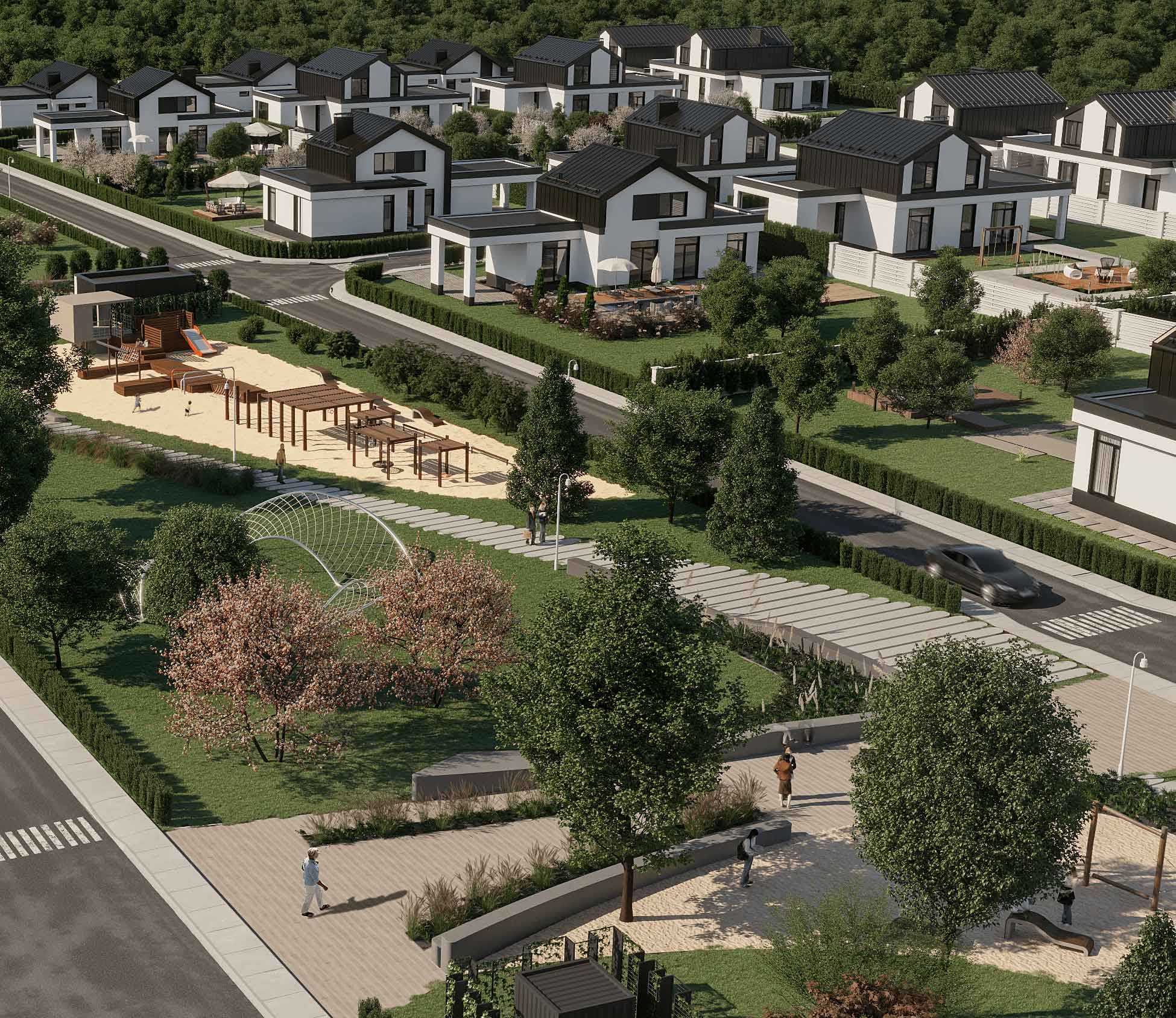 При покупці будинку в елітному котеджному містечку клієнт отримує не тільки готовий будинок з оздобленням, а й землю, впорядковану територію самого містечка, охорону, всі комунікації. Така нерухомість витримана в єдиному архітектурному стилі, але при цьому має свій неповторний дух та характер
